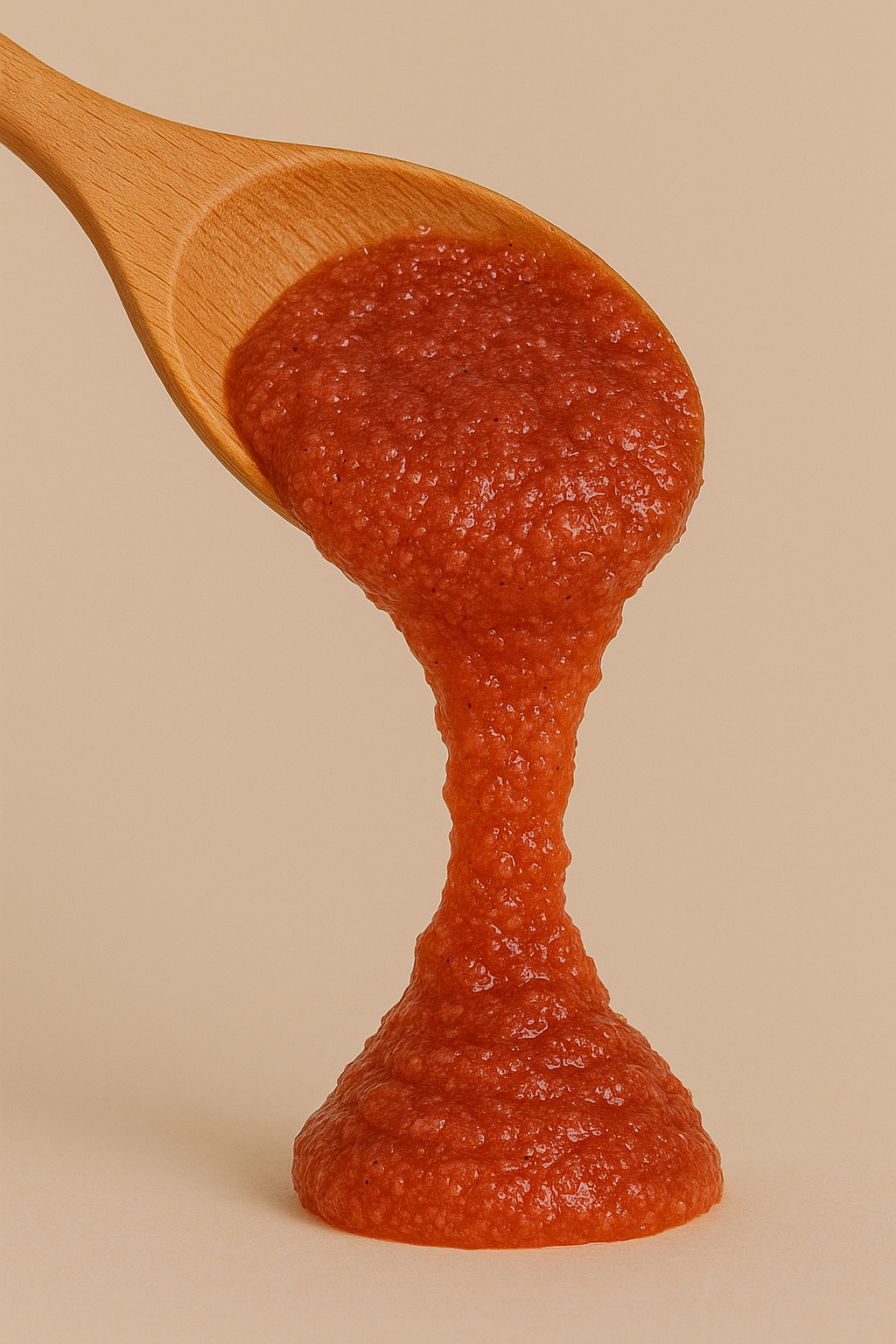 - Körsbärspuré: Rik på antioxidanter som förnyar hudcellerna, jämnar ut hudtonen och ger ett friskt glow.